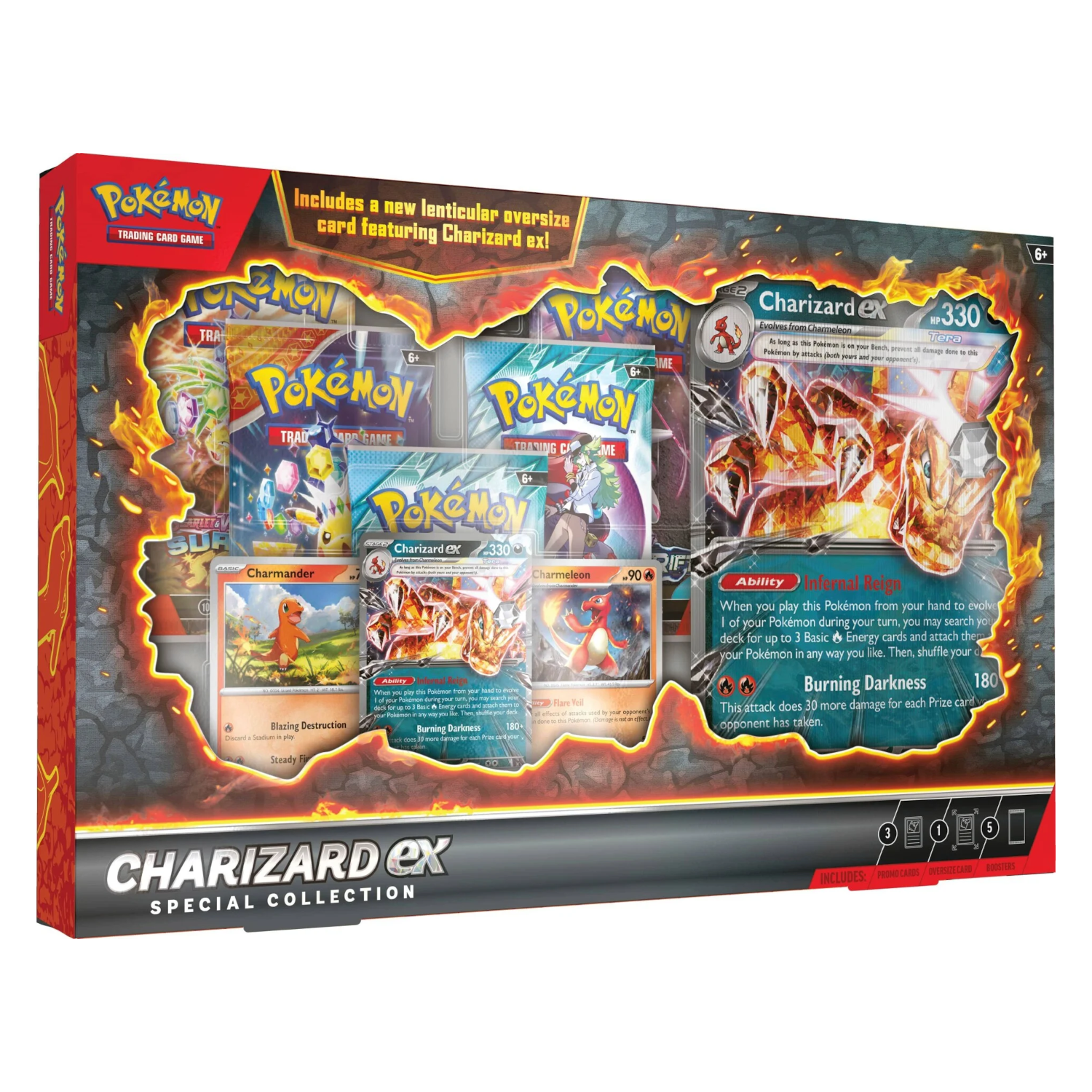 Charizard ex brænder modstanderens føring med ildkraften fra en Mørke-type Pokémon. Udvikl den fra Charmander og Charmeleon, og brug derefter dens stærke evner og angreb til at lave et comeback. Denne flammende Charizard box indeholder 5 Pokémon TCG boosterpakker og et jumbo kort med den eneste ene ild Pokémon - bevæg kortet frem og tilbage for at se Charizard ex gå til angreb!